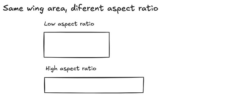 A low aspect ratio concentrates area closer to the root, resulting in a shorter, wider wing. A high aspect ratio spreads the same area over a longer span, producing a narrower, more elongated wing. This relationship influences efficiency, roll behavior, structural demand, and handling margins.