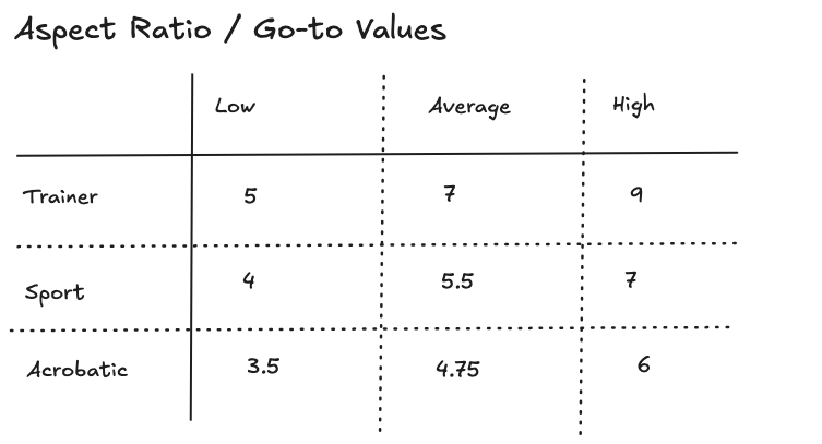 In practice, aspect ratio is constrained long before fine geometry is considered. Span may be limited by transport, structure, or control considerations. Wing loading defines how much lift the wing must generate. Within those boundaries, aspect ratio can be adjusted, but never independently.
